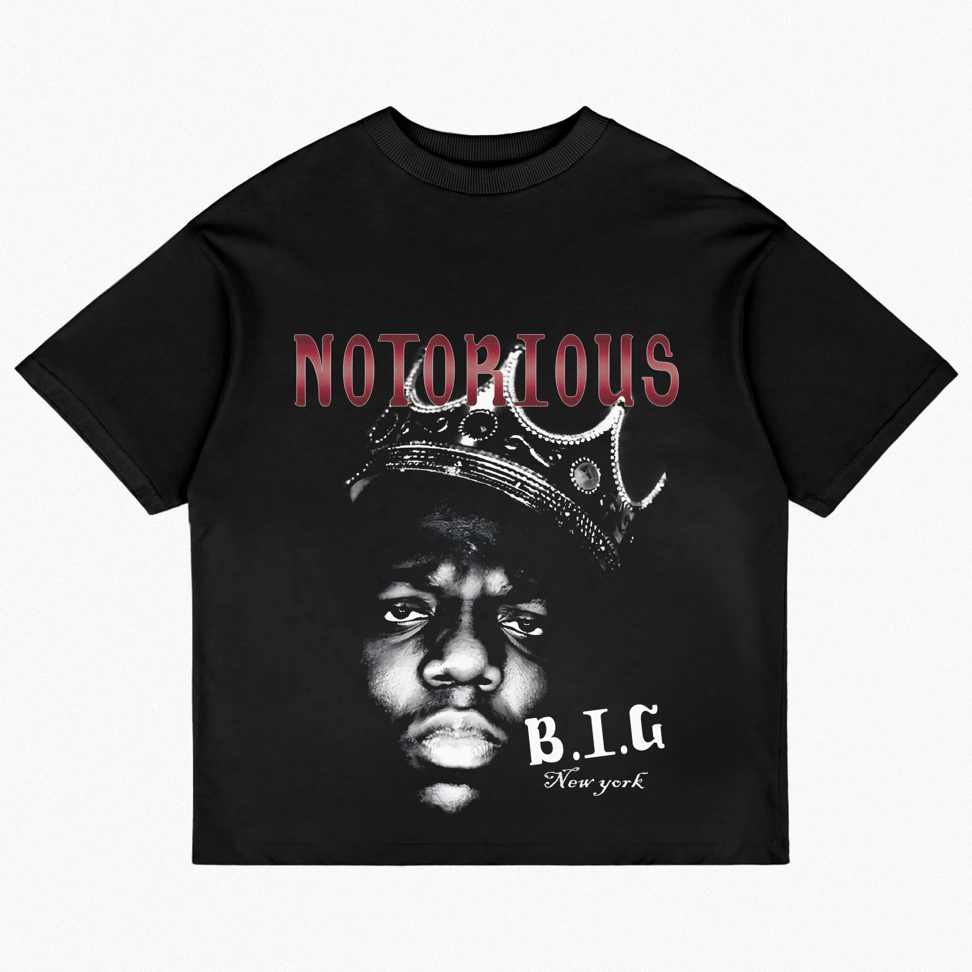 Camiseta Biggie, coleccion LEYENDAS VIVAS, 100% algodón, estilo opened cuello rib